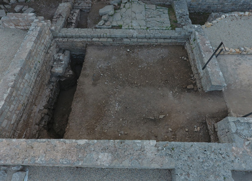 Objekti sa sjeverne strane završavaju masivnim zidom izrađenim prilagođavanjem kamena živca i klesanog kamena. Prema načinu gradnje, vjerojatno je riječ o grčkom zidu na kojemu su mnoge preinake iz rimskoga razdoblja. Zid je od podnica u objektima sačuvan do visine više od dva metra. Istraživanjem zapadno od prostorije "2", gdje se nalazila potencijalna ulica smjera sjever – jug, ustanovljeno je da nje nema, tj. vjerojatno se radi o unutrašnjosti novoga objekta. Namjena navedenog prostora bit će jasnija nakon istraživanja 2024. godine. Provedena su i revizijska istraživanja prostora pretpostavljenog apoditerija. O prethodnim istraživanjima nije ostavljeno ni jedno izvješće, pa ni slikovni materijal s dokumentacijom. Rezultati istraživanja pokazuju da ne postoji 'klupica' koju je spomenuo Branimir Gabričević, temeljem čega je tu prostoriju povezao s apoditerijem. No s obzirom na to da je ta prostorija neposredno uz dva ulaza u termalni kompleks, smatramo da je pretpostavka o apoditeriju i dalje realna. (DB)