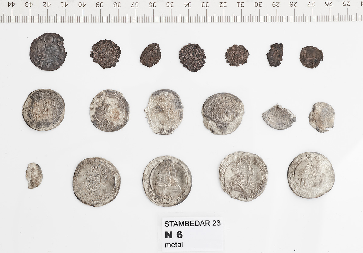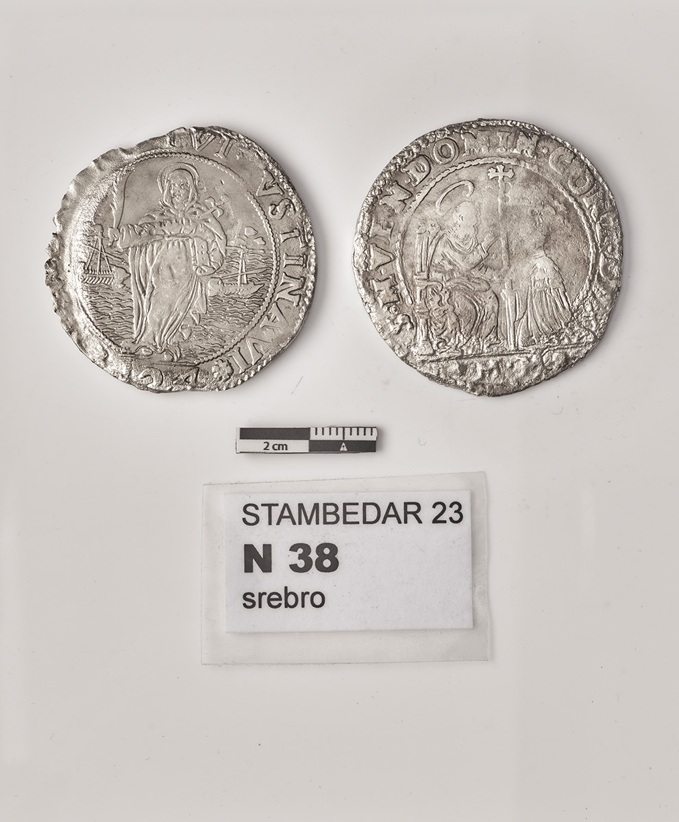 Upravo pronalazak luksuznih predmeta (srebrne i brončane kopče za obuću i odjeću, čaša na stalku, krunica od gagata /crni lignit/ s četiri svetačke medaljice i dva ogledala) možemo povezati s misterioznim putnikom. Uz navedeno, pretpostavlja se i da je prikupljen zlatni, srebrni i bakreni novac vjerojatno imovina te osobe. Od tridesetak srebrnih kovanica, treba izdvojiti dva kovana u vrijeme dužda Domenica Contarinija (1659. – 1675.); jedan s prikazom svete Justine ima vrijednost od 124 soldi, dok drugi (u vrijednosti jednog dukata) prikazuje svetoga Marka kako predaje štap s križem i zastavom duždu koji je u klečećem položaju. Nađen je i karakteristični venecijanski bakreni novac koji je bio u optjecaju u Dalmaciji i Albaniji. Nose natpis DAL(M)(A). / ET / ALB(A)(N) i vrijedni su jedan sold. Od kovanica koje nisu venecijanskog porijekla, najzastupljenije su one kovane u vrijeme cara Svetoga Rimskog Carstva Leopolda I. (1658. – 1705.). Kovanice toga monarha, koji je bio i ugarsko-hrvatski kralj, prepoznatljive su po jednoj karakteristici Habsburgovaca: njihovoj izraženoj donjoj čeljusti (tzv. habsburška brada).