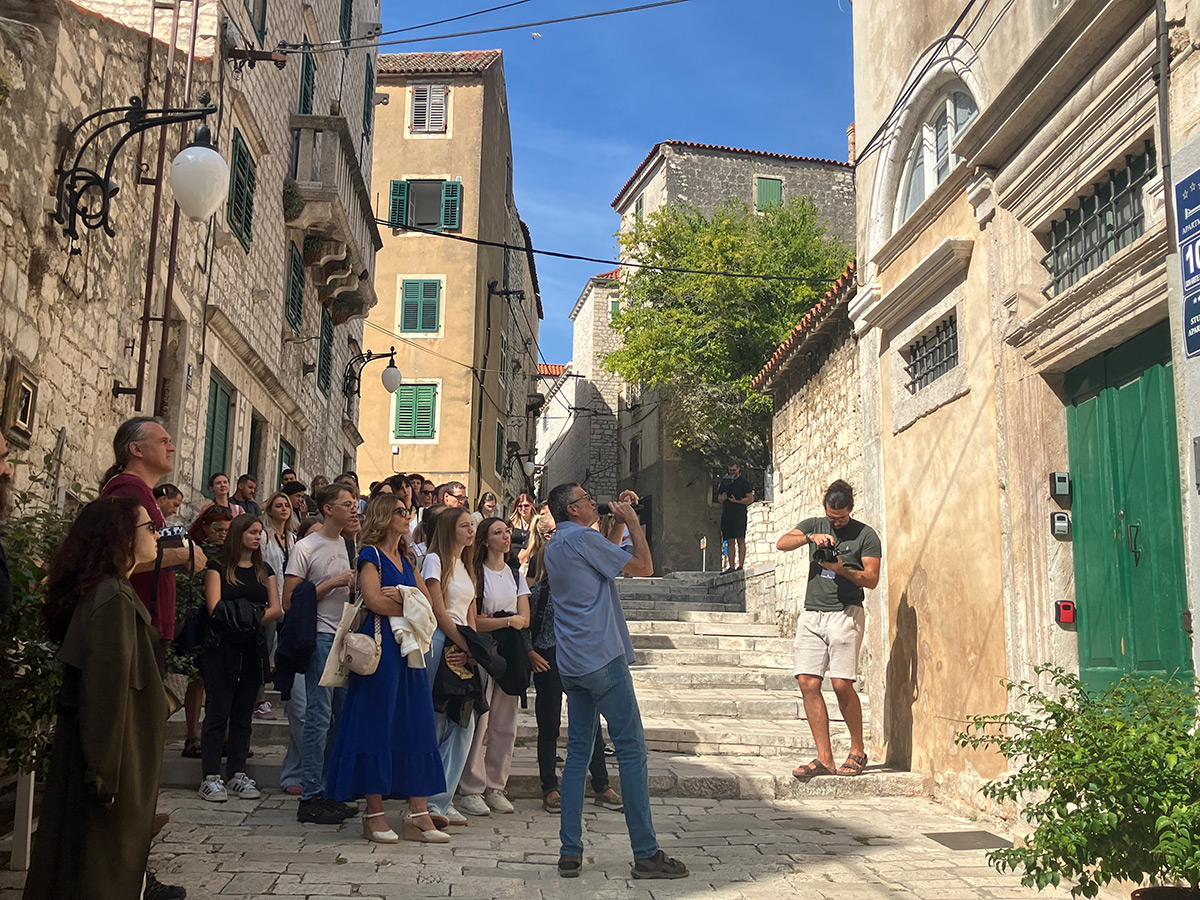 Drugi dan programa počeo je okupljanjem u katedrali sv. Jakova, gdje je studentima i ostalim posjetiteljima Helena Ugrina iz Hrvatskog restauratorskog zavoda ukratko predstavila dosadašnje konzervatorsko-restauratorske radove na toj građevini nacionalne važnosti, upisanoj na UNESCO-ov Popis svjetske baštine.
