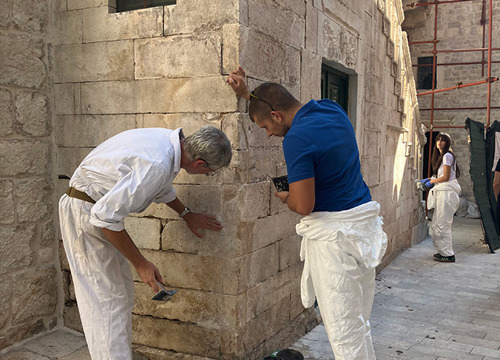 Nakon obilaska katedrale, studenti i učenici imali su priliku sudjelovati u uzimanju uzoraka izvorne polikromije s portala te čišćenju laserom koji se primjenjuje na obnovi portala.