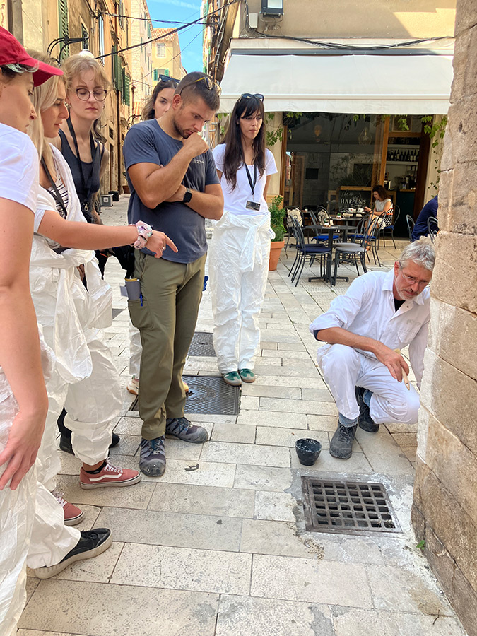 Ostatak dana studenti su radili na konzervaciji-restauraciji kamene plastike na tri lokacije u staroj gradskoj jezgri Šibenika: na portalu crkve sv. Lovre, portalu u Ulici sv. Nikole Tavelića na broju 13 (Kolo) te na kamenom stubištu crkve sv. Frane (mentor: Mate Pavin iz Hrvatskog restauratorskog zavoda). Na taj su način studenti iz Splita, Zagreba, Beča i s Cetinja stjecali praktično znanje i vježbali manualne vještine pod mentorstvom iskusnih restauratora.