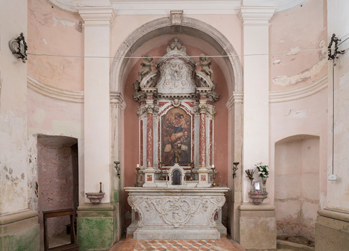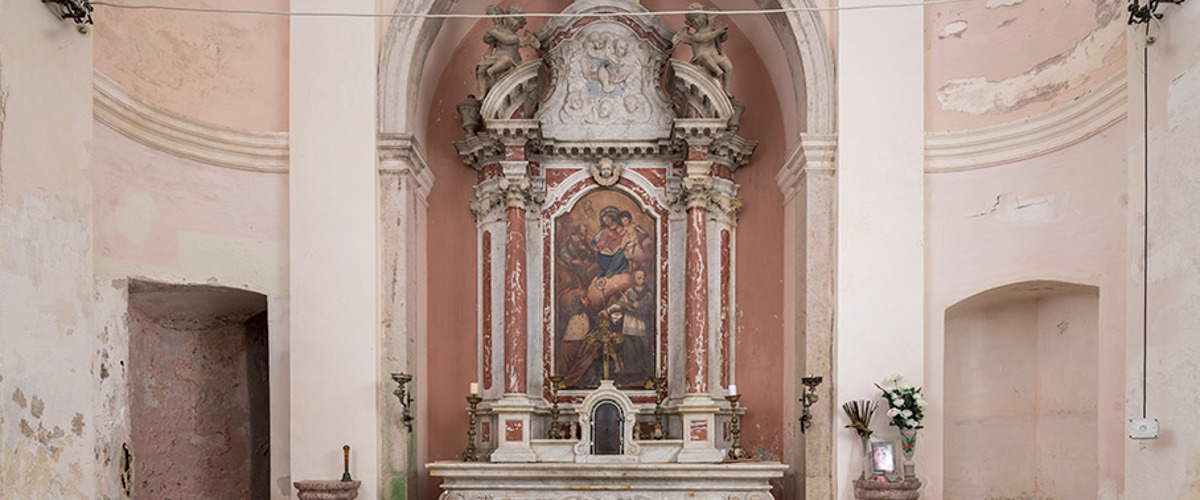 Kameni oltar je 1779. godine izradio Giovanni Mattiuzzi iz Udina, čija je radionica vrlo aktivno djelovala na području Istre tijekom 18. i 19. stoljeća. Stilska analiza upućuje na zaključak da je autor oltarne pale oslikao i strop crkve. Iako je za sada nepoznat, pretpostavlja se da dolazi iz Furlanije, gdje je vjerojatno već surađivao s Matiuzzijevom radionicom.