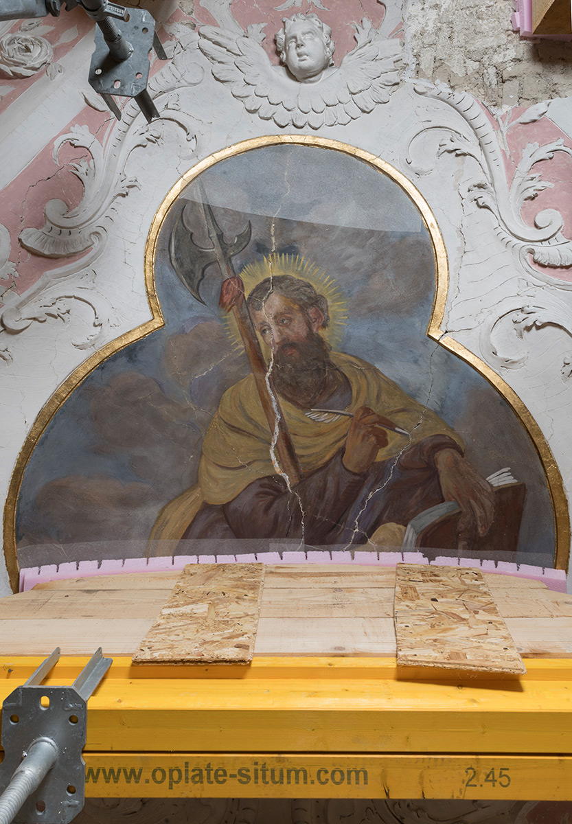 Nakon hitnih mjera zaštite i provedbe potrebnih ispitivanja nosive konstrukcije, u drugoj je fazi izrađen projekt konstruktivne obnove. Tijekom 2023. godine počeli su konzervatorsko-restauratorski radovi na očuvanim dijelovima svoda crkve, poglavito na brojnim štukoukrasima i zidnim slikama, podrazumijevajući iznimno složen pristup i metodologiju s obzirom na zahtjevnost uvjeta rada i istovremeno prilagođavanje izvođenju građevinskih zahvata. (EŠ / MJ / BM)