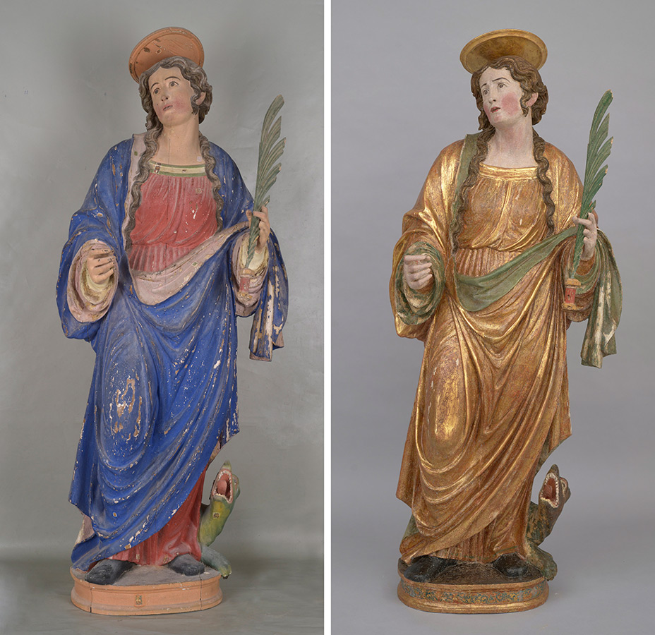 Konzervatorsko-restauratorski radovi (voditelj Miroslav Pavličić, Odjel za drvenu polikromiranu skulpturu 2, Služba za pokretnu baštinu) počeli su 2015. godine istraživanjima polikromiranog sloja in situ, a nastavljeni su u radionici Hrvatskog restauratorskog zavoda u Zagrebu. S obzirom na to da je ustanovljeno da je vrijedni izvorni oslik očuvan u dovoljnoj mjeri te da je slojeve neadekvatnog preslika moguće ukloniti bez njegova oštećivanja, odlučeno je prezentirati izvorni sloj. Iznimka su pûti većine skulptura, kod kojih je izvorni sloj oštećen u znatnoj mjeri, a preslik iz prve obnove oltara dovoljno je kvalitetan i sličan izvornom.
