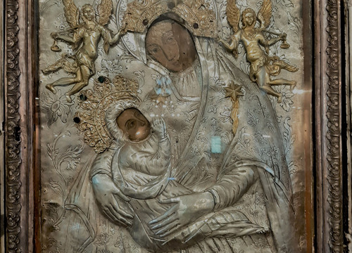 Ikona Bogorodice s Djetetom s okvirom iz crkve Uznesenja Blažene Djevice Marije s otoka Žirja