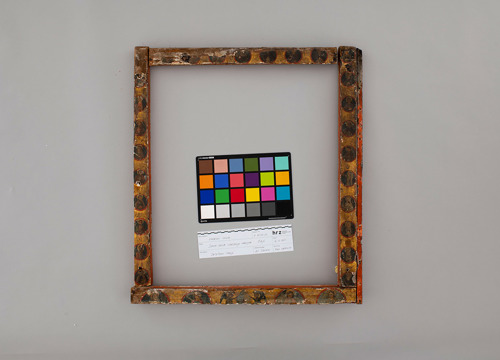 Okvir je, u odnosu na ikonu, bio u stabilnijem stanju, unatoč nedostajućim dijelovima slikanog sloja, no zbog smještaja unutar niše uopće nije bio vidljiv. Prema tragovima rezanja donje letvice moglo se zaključiti da izvorni smještaj tih dviju umjetnina nije bio u zatečenoj niši. Na okviru je proveden dio istraživanja; možda je najzanimljiviji rezultat to što se kao tkanina za izolaciju slikanog sloja od čavli koristila svilena tkanina. Imajući u vidu da su se za takve svrhe obično upotrebljavali ostaci jeftinijih tkanina, taj podatak postaje zanimljiv u kontekstu sagledavanja povijesti svilarstva i putova svile u našem podneblju. Na okviru je do sada proveden dio kemijskih ispitivanja i identifikacija drva. Nakon povratka umjetnine s fumigacije, kojoj je bila podvrgnuta zbog infestacije aktivnim insektima, istraživački radovi će se nastaviti.