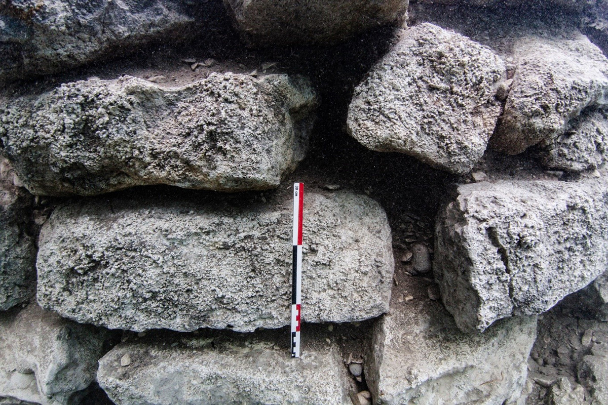 Istraživanje je pokazalo da je unutarnji zid bio u moru. Na zidu su pronađeni kalcificirani ostaci morskih organizama, dok je vanjski zid bio na kopnu, odnosno unutar vanjskog nasipanog pojačanja. Područje između dva zida bila je šetnica širine tri metra. Svi pronađeni ostaci zidova zapravo su bili temelji nadogradnji koji danas nedostaju. Pokretni materijal zbog procesa desalinizacije zasad nije detaljnije obrađen, no preliminarna analiza pokazuje da je riječ o materijalu korištenom u razdoblju kasne antike, od 4. do 6. stoljeća.