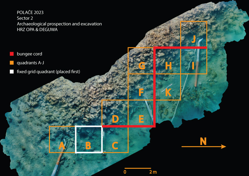Od 2. do 14. svibnja 2023. godine provedeno je podvodno arheološko istraživanje u podmorju kasnoantičke palače u mjestu Polače na otoku Mljetu (voditelj: Igor Miholjek, konzervator savjetnik arheolog, Odjel za podvodnu arheologiju, Služba za arheološku baštinu). Arheološka zona osim palače obuhvaća i dvije ranokršćanske bazilike iz 5. i 6. st., ostatke termi i gospodarskih objekata te dio arhitekture koja se danas nalazi u moru. Riječ je o pristaništu i operativnoj obali te ribnjaku. Istraživanje je provedeno u suradnji s njemačkom udrugom za promicanje i razvoj podvodne arheologije DEGUWA (Deutsche Gesellschaft zur Förderung der Unterwasserarchäologie), a sudjelovala je i tvrtka NavArchos iz Zagreba. Financijska sredstva za istraživanje osiguralo je Ministarstvo kulture i medija RH i DEGUWA.
