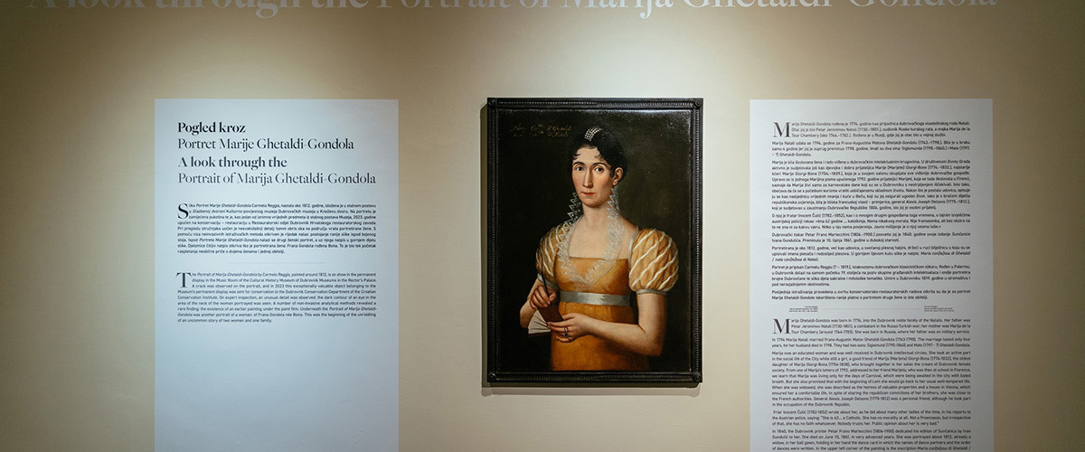 Konzervatorsko-restauratorski radovi na slici "Portret Marije Ghetaldi Gondola" provedeni su 2023. i 2024. godine (voditeljica: Barbara Knežević-Kuzman, Restauratorski odjel Dubrovnik Hrvatskog restauratorskog zavoda). Slika je nastala oko 1812. godine i pripisuje se klasicističkom slikaru Carmelu Reggiu (Palermo ? – Dubrovnik, 1812.). Već pri vizualnom pregledu portreta, u predjelu vrata Marije Ghetaldi Gondola uočen je obris oka u donjim slojevima. Površina slike mjestimice je bila izrazito neravna, s nizom vidljivih ispupčenja, stoga je izrađen digitalni model površine slike (DSM – Digital Surface Model ili u hrvatskoj terminologiji DMV – digitalni model visina) u sklopu fotogrametrijske izradbe 3D modela umjetnine. Na pročišćenom prikazu visinskih podataka o površini slike organiziranom u matrice, neravnine su poprimile smisleniji oblik koji je upućivao na obrise ljudske figure. Na snimkama infracrvene reflektografije te naposljetku na rendgenskim snimkama pojavio se veći dio očuvanog, ali preslikanog ženskog portreta. Natpis Francesca Contessa de Gondola nata Contessa de Bona, nađen u gornjem lijevom kutu, otkriva identitet portretirane Frane Gondole. Tim otkrićem slika je dovedena u vezu s još dva muška portreta iz zbirke Kulturnog-povijesnog muzeja, na kojima su portretirani Franin suprug Sigismund-Dominik (Šiško) Gondola i njegov nećak, a poslije i posinak Frano-Augustin Ghetaldi Gondola, ujedno i suprug Marije Ghetaldi Gondola. Analizom bojenih slojeva metodom rendgenske fluorescentne spektroskopije (XRF) utvrđeno je da su natpisi na muškim portretima i preslikanom ženskom portretu izvedeni napuljskom žutom, dok je za natpis na gornjem ženskom portretu korišten oker pigment.