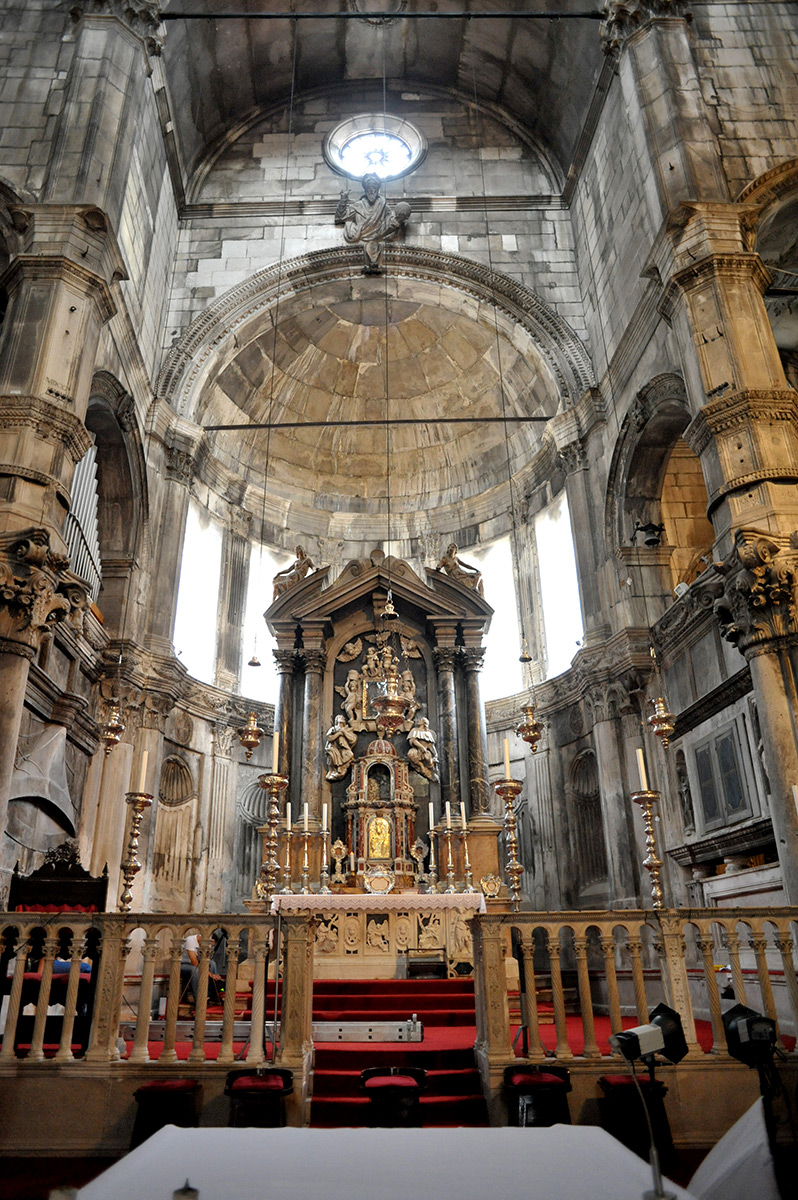Potkraj 2012. godine, u prezbiteriju i glavnoj apsidi katedrale, Hrvatski restauratorski zavod proveo je istraživačke i probne konzervatorsko-restauratorske radove radi procjene cjelokupnog stanja kamenog oplošja apside. To je poslužilo kao podloga cjelovitim konzervatorsko-restauratorskim radovima koji su počeli 2013. godine u unutrašnjosti centralne apside. Početni zahvati odnosili su se na čišćenje zidne plohe unutrašnjosti katedrale, ali su pristup i metodologija od početka radova obuhvaćali svu širinu konzervatorsko-restauratorske problematike. U svrhu boljeg razumijevanja postojećega stanja materijala, uzroka propadanja i utvrđivanja njegove izvornosti i kontrole uspješnosti konzervatorsko-restauratorskih metoda, provedena su dijagnostička mjerenja i ispitivanja.