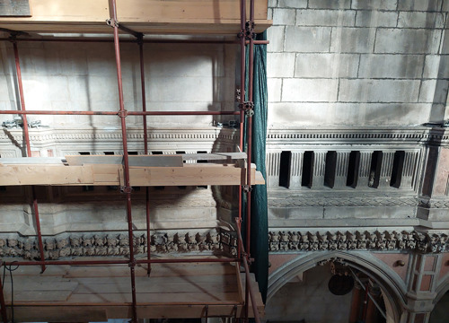 Do sada su izvedeni radovi u svetištu, prezbiteriju i većem dijelu bočnih brodova, zapadnom unutarnjem zidu i bočnim zidovima centralnog broda do visine florealnog vijenca. Zato se počelo s radovima na svodnim poljima glavnog broda i na površini zida glavnog broda, od florealnog vijenca do peta svoda.