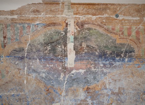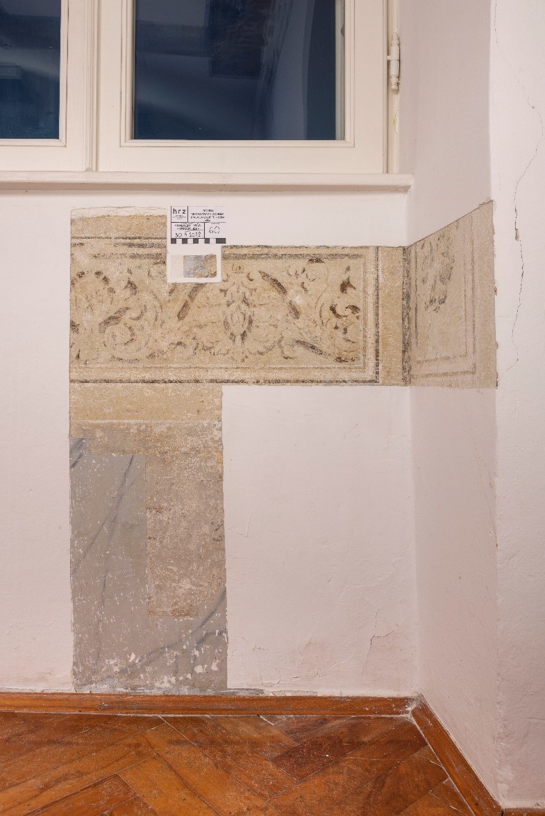 S obzirom na kompleksnost tumačenja geneze prostora i s njom povezanih stratigrafskih slojeva oslika, radi utvrđivanja stanja, valoriziranja i odluke o njihovoj prezentaciji, u dogovoru s nadležnim Konzervatorskim odjelom u Puli donesena je odluka o uklanjanju svih recentnih naliča i nekih slojeva preslika. Pri istraživanjima i uklanjanju recentnih slojeva s reprezentativnog trompe l'oeil oslika sa zidova zapadnog dijela prostorije 27, na sjevernom je zidu utvrđena naknadno zazidana prozorska niša koja je tijekom radova 2022. godine razidana. Nakon početka uklanjanja recentnih slojeva s oslika na stropovima u prostorijama 27 i 29 tijekom 2023. godine, uočena su velika oštećenja. Prijetilo je otpadanje fragmenata stropne žbuke s oslikom pa je u hitnoj intervenciji privremeno učvršćena stropna žbuka kako ne bi došlo do većega oštećivanja. Godine 2024. nastavljeno je uklanjanje recentnih slojeva s oslika na zapadnom dijelu stropa prostorije 27 (27a) i stropa prostorije 28. Planiran je nastavak uklanjanja recentnih slojeva s oslika stropa prostorije 26, kao i sa zidova u istočnom dijelu prostorije 27 (27b) te zidova u istočnom dijelu prostorije 29 (29b).