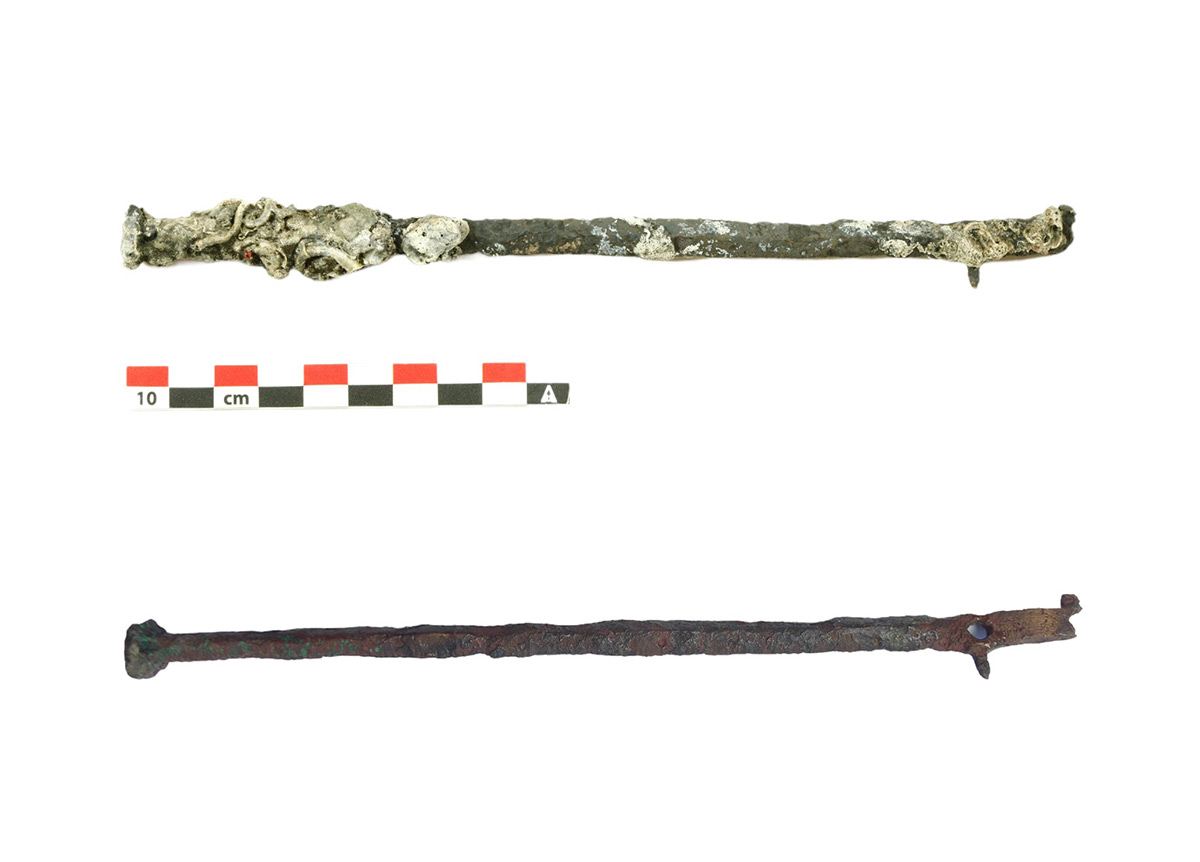 Željezni predmeti podvrgnuti su odsoljavanju i mehaničkom čišćenju. Završna faza uključivala je konsolidaciju otopinom tanina u etanolu te primjenu zaštitnog sloja Paraloida B-72 u acetonu. Tim se postupcima osigurava dugotrajna stabilnost i očuvanje željeznih artefakata.