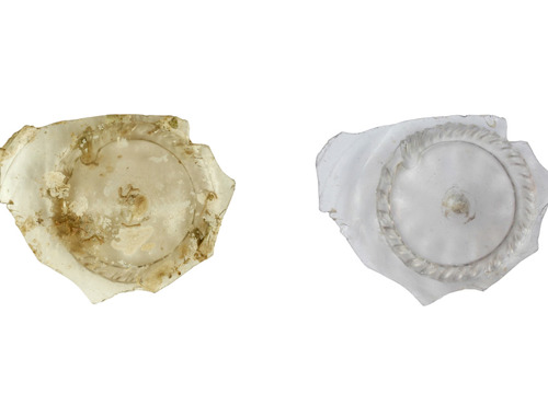 Stakleni predmeti također su pažljivo mehanički očišćeni. Najvažnije je bilo uklanjanje obraštajnih organizama i naslaga kalcifikata, da bi predmeti bili u stanju što bližem izvornom. Kao i za predmete od bronce i željeza, cijeli proces restauracije staklenih predmeta detaljno je fotografski dokumentiran.