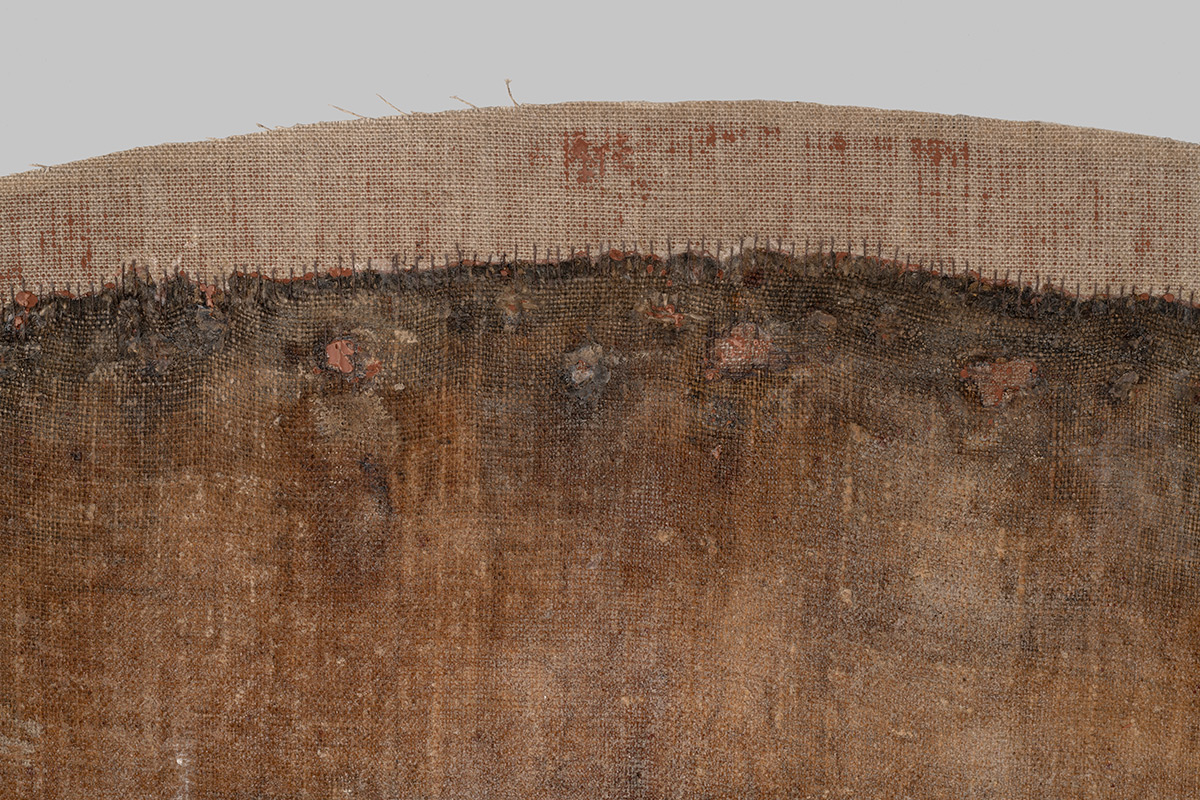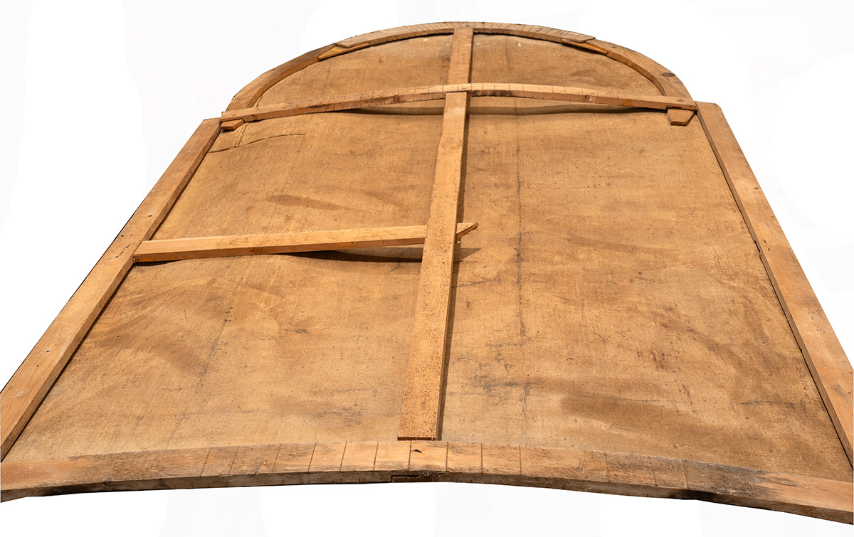 Nakon uklanjanja nataloženih nečistoća i oksidiranog laka, stabilizacije oslabljenih područja slikanog sloja te nadopune oštećenih dijelova platna, slika je podstavljena novim lanenim platnom. Najveći izazov bio je ponovno napinjanje slike na konkavno oblikovan drveni podokvir, budući da takva geometrija uzrokuje neravnomjernu napetost platna, osobito na spojevima ravnih i zakrivljenih dijelova. Kako bi se izbjegla ta opasnost, primijenjen je sustav napinjanja oprugama, koji omogućuje prilagodljivo zatezanje platna, kompenzirajući promjene napetosti uzrokovane temperaturnim i mikroklimatskim oscilacijama unutar crkvenog prostora. Takav se sustav, rijetko primjenjivan na velikim slikama, pokazao izuzetno uspješnim i tehnički sigurnim.