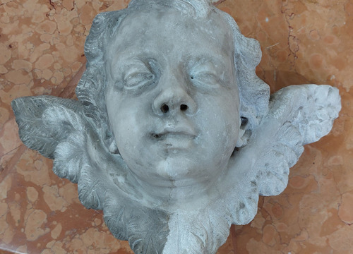 Svetohranište je zatečeno u lošem stanju. Kamena građa ugrožena je pukotinama i lomovima uzrokovanim bubrenjem drvenih klinova u spojevima stupića i kapitela, a vidljive su i recentne rekonstrukcije koje nisu finalizirane te mjestimično nedostaju fragmenti mramornih ornamenata. Svetohranište je rasklimano i ugroženo zbog pukotina, a dva desna stupića zajedno s kapitelima odvajaju se od cjeline. Površina kamena, posebno u gornjim zonama svetohraništa, potamnjela je zbog nataloženog onečišćenja. Onečišćenje je, kao i na ostalim površinama oltara, uzrokovano dimom svijeća i prašinom. Mramorni segmenti pomaknuti su u spojevima pa su se pojedini elementi razdvojili, a pomaci su ispunjeni širokim i neadekvatnim sljubnicama. Recentne zapune bit će sanirane i zamijenit će se novima od umjetnog materijala na akrilnoj bazi, čiji će završni, vidljivi sloj biti patiniran prema tonu kamena upotrebom slikarskih pigmenata. Nove sljubnice izvedene su u materijalu na bazi vapna, hidrauličkog vapna, aktivnih silikata i selektiranog kamenog agregata. Sve su površine od crvenog i zelenog kamena, kao što su intarzije i stupovi, polirane. Završetak radova na sanaciji oltara planiran je za listopad 2023. godine. (MP)