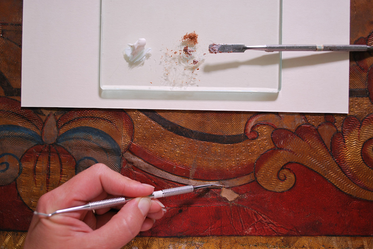 Konzervatorsko-restauratorski radovi (voditeljice: Marijana Jukić, konzervator-restaurator, 2021.; Nataša Miloslavić, konzervator-restaurator, 2022., Odsjek za papir, Restauratorski odjel Dubrovnik) počeli su dokumentiranjem zatečenog stanja, nakon čega je predoltarnik odvojen od drvenog okvira koji je na njega bio zalijepljen, a potom i od drvenog panela s poleđine. Provedena su konzervatorsko-restauratorska istraživanja kojima su obuhvaćene analize nosioca, stratigrafske i mikrokemijske analize mikropresjeka te probe uklanjanja prljavštine. Na kožnatom nosiocu uklonjena je površinska prljavština, nakon čega je tretiran sredstvom za čišćenje kože na bazi glicerina i manjeg udjela vode. U postupku čišćenja, naročito poleđine, korištena je silikatna koloidna glina, idealna za površine osjetljive na djelovanje vode. Postupkom vlaženja između paropropusne folije, poliesterske folije i kapilarnog filca koži je vraćena elastičnost. Nedostajući dijelovi materijala u sloju nosioca rekonstruirani su kožom iste strukture. Retuš je izveden na mjestima na kojima je nedostajao originalni oslik.