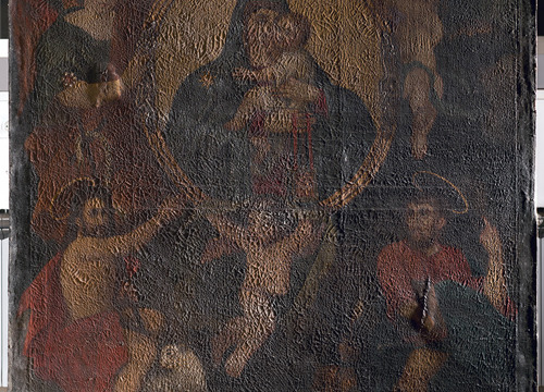 Komisijskim pregledom prihvaćen je prijedlog o uklanjanju kompletnog preslika, ali i naknadno dodanog komada platnenog nosioca te prezentaciji izvornoga slikanog sloja. U sloju preslika je otkriveno cinkovo bjelilo koje se počelo koristiti sredinom 19. stoljeća, čime je datiran i preslik. U prethodnoj intervenciji promijenjena je dimenzija nosioca prišivanjem lanene trake uz cijeli donji rub slike. S obzirom na to da na njemu nije zatečen izvorni slikani sloj, niti je prikazan ikakav ikonografski sadržaj, odlučeno je da se ukloni.