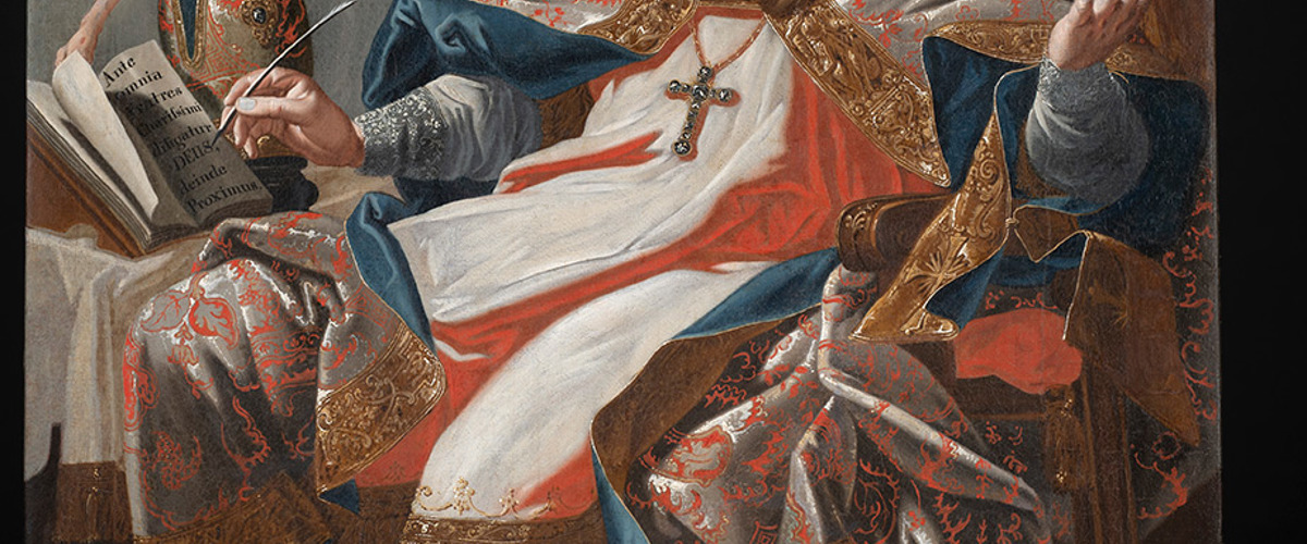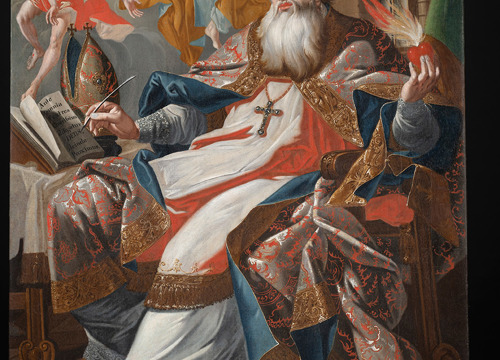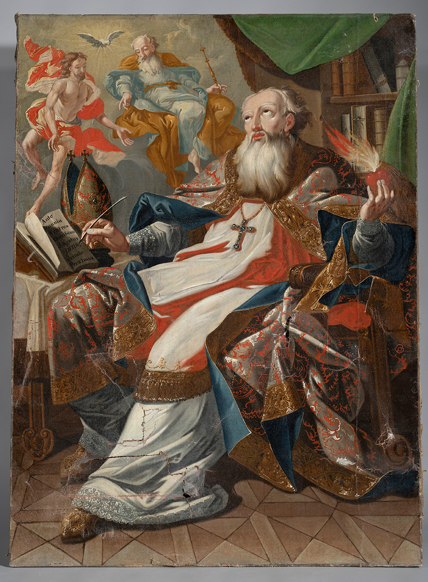 Slika s prikazom svetoga Augustina biskupa, jednoga od četvorice ranokršćanskih crkvenih otaca i filozofa, pripisana je najvažnijem slikaru hrvatskih pavlina – Ivanu Krstitelju Rangeru (Götzens, Tirol, 1700. – Lepoglava, 1753.). S obzirom na to da je riječ o slici na platnu, a veći dio Rangerovih djela veže se uz zidno slikarstvo, osobito je važna za vrednovanje njegova opusa. Slika je bila izložena u Nadbiskupskom dvoru u Zagrebu do potresa u ožujku 2020. godine, a pretpostavlja se da potječe iz samostana u Lepoglavi. U potresu je pala sa zida na pod i na nju se srušila veća količina građevnog materijala, što je uzrokovalo velike poderotine i deformacije platna. Tada je premještena u zbirku Varaždinske biskupije.