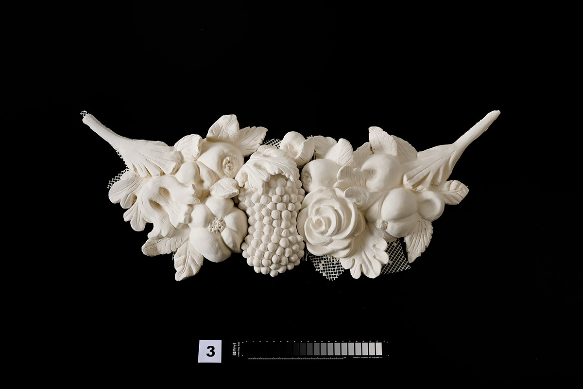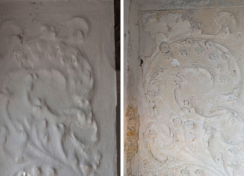 Štukodekoracija svoda izrazito je oštećena detonacijom krajem Drugoga svjetskog rata. Vijenac i dekorativni elementi u nišama i oko niša prozora prije početka radova bili su prekriveni debelim naknadnim slojevima žbuka i naliča, pa je izvorni sloj bio gotovo nečitak zbog gubitka plasticiteta uzrokovanog višekratnim ličenjem.