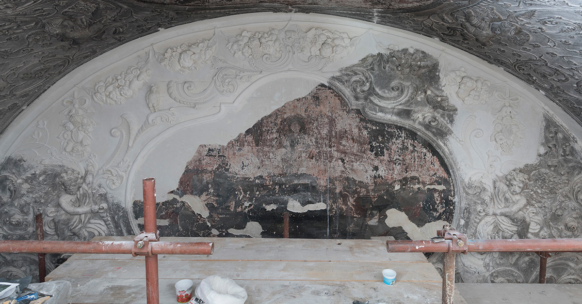 Lepoglava, bivši pavlinski samostan i župna crkva Bezgrešnoga začeća Blažene Djevice Marije – bivša knjižnica, štuko – nastavak konzervatorsko-restauratorskih radova