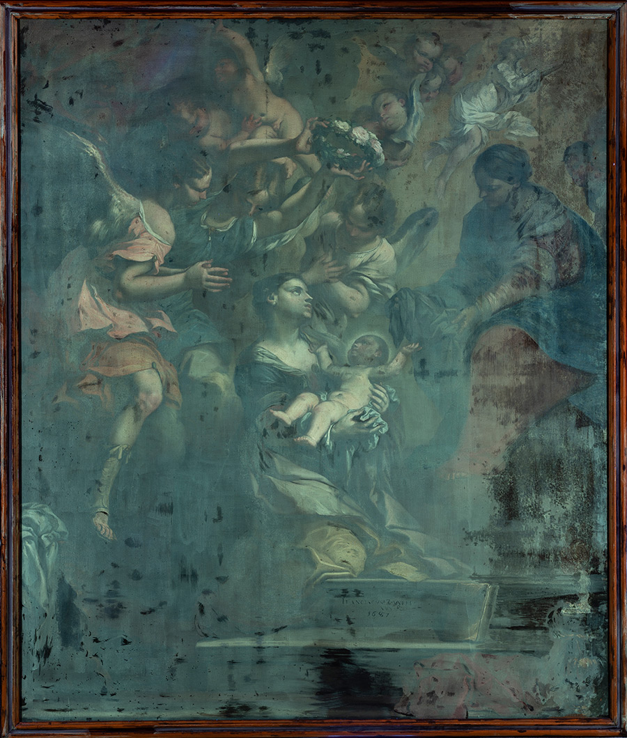 Konzervatorsko-restauratorski radovi na slici Mistična vizija sv. Ruže Limske počeli su 2020. godine (voditelj Slobodan Radić, Odjel za štafelajno slikarstvo 1, Služba za pokretnu baštinu). Snimkama učinjenim tehnikom ultraljubičaste fluorescencije i infracrvene reflektografije utvrđena su znatna oštećenja slikarske osnove s desne strane platna te alterirani retuš nanesen ispod i iznad obilnih nanosa laka koji se pod utjecajem vlage osipao. U ranijim konzervatorsko-restauratorskim radovima na slici upotrijebljena je voštano-smolna masa u fazama podljepljivanja, podstavljanja novim platnom i rekonstrukcije oštećenja u slikanom sloju. Potamnjeli retuš nanesen na sloj laka, koji je narušavao vizualni integritet slike, uklonjen je, a pulverzirani lak je stanjen. Oštećenja su u sloju podloge rekonstruirana voštanim kitom. Slika je potom konsolidirana i izravnata na toplinskom vakuumskom stolu bez uklanjanja podstavnog platna i voštano-smolne mase. Nakon napinjanja na podokvir, izveden je retuš na mjestima oštećenja slikanog sloja. Nanesen je sloj zaštitnog laka. Ukrasni okvir je ponovno spojen, a oštećenja na njemu su rekonstruirana i retuširana.
