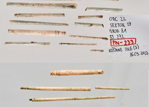 Završen je rad na 21 koštanom posebnom nalazu. Riječ o koštanim iglama, piksidama i pršljencima. Koštani nalazi očišćeni su mehanički, blagim četkicama, destiliranom vodom i alkoholom. Predmeti od više fragmenata su spajani, lijepljeni, konsolidirani te površinski zaštićeni.