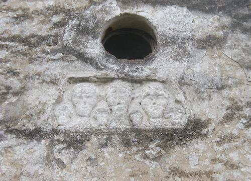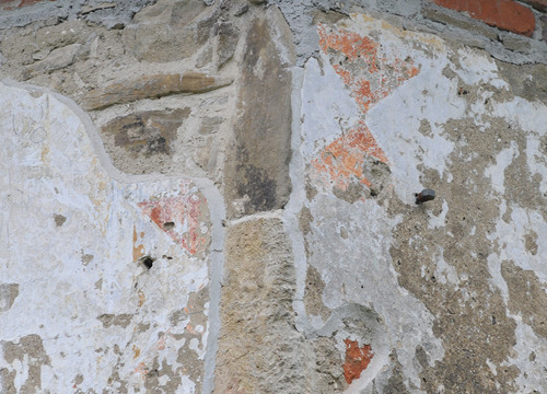 Budući da je građa vanjskih zidova crkve miješana (kamen i opeka), bilo je mnogo oštećenih i udubljenih mjesta koje je trebalo prije žbukanja ispuniti mortom i sitnijim dijelovima građe da bi se površina donekle izravnala. U međuvremenu je restaurator Mijo Jerković s Odjela za kamenu plastiku izveo zaštitne radove na kamenom reljefu sa sedam glava i na uglovnjaku s ugrebenom zvijezdom na glavnom pročelju, što je uključivalo čišćenje, minimalnu dopunu nedostajućih dijelova i višekratno natapanje vapnenom vodom radi učvršćenja kamena. Zbog vrlo visokih temperatura ljeti, privremeno su zaustavljeni radovi žbukanja pročelja jer bi vapneni mort popucao zbog naglog sušenja. Iz istog razloga nisu se dalje natapali ni kameni elementi vapnenom vodom.