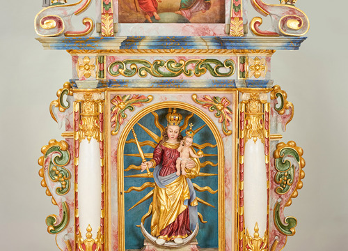 Oltar je dosljedno ukrašen motivima hrskavice: cvjetovi s četiri latice s umetnutim listićima, "dvostruke vitice", hrskavičasti cvijet i hrskavičasti prepleti.