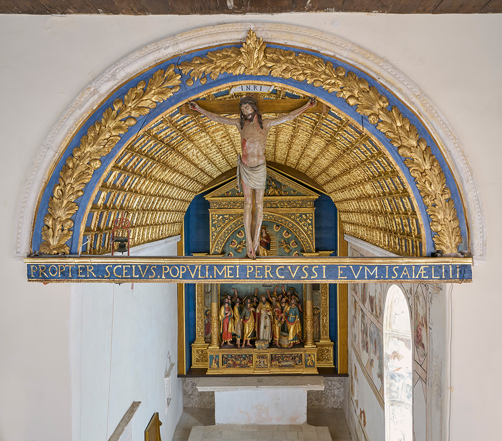 U recentnoj intervenciji primarno je bilo materijalno ojačati drveni nosilac na mjestima na kojima je zbog djelovanja crvotočine došlo do znatnog slabljenja mehaničkih svojstava materijala, osigurati stabilnu podlogu za podljepljivanje odignuća polikromije zapunjavanjem crvotočnih kanala i izraditi sustav potporne konstrukcije kojim bi se rasteretili određeni nosivi dijelovi sklopa, a težina i napetosti raspršile na veću površinu te se time omogućila i jednostavnija montaža. Odlučeno je da se prezentira posljednji sloj polikromije koji je rezultat neke od prijašnjih intervencija, nastale svakako prije tridesetih godina prošloga stoljeća, od kada datiraju prve sačuvane fotografije oltara, uz rekonstruiranje nedostajućih dijelova drvenog nosioca i nedostajuće polikromije kako bi se ostvarila oblikovna i vizualna cjelovitost djela. (NL)