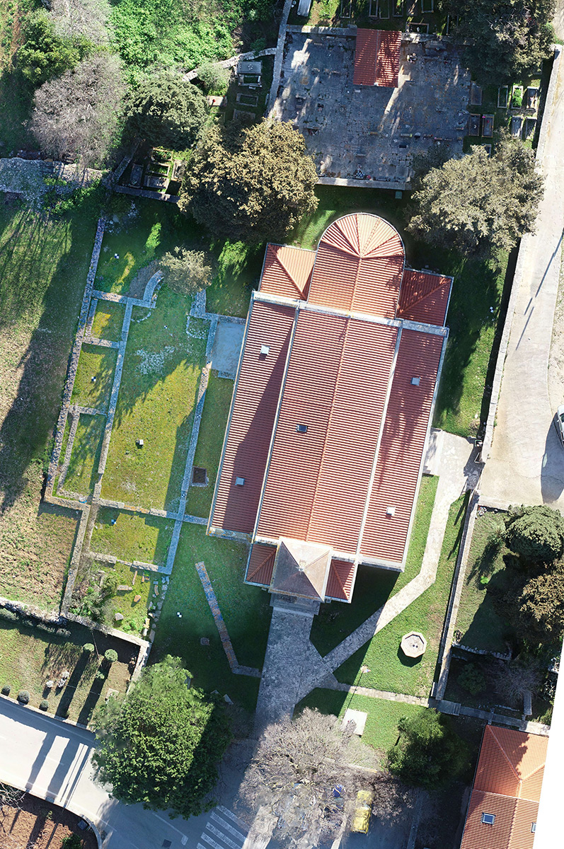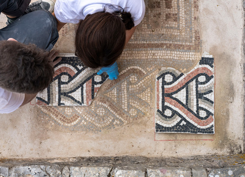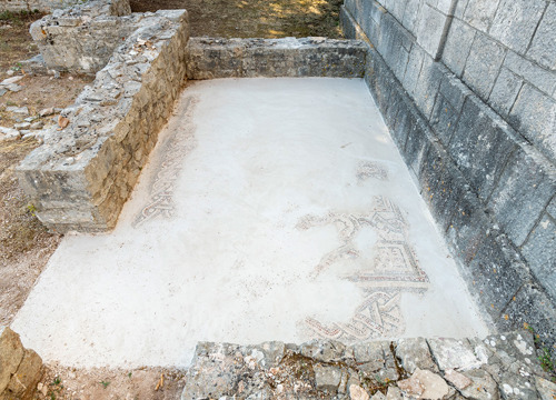 Ostaci antičkih mozaika iz jednobrodne starokršćanske bazilike sv. Stjepana u naselju Grohote