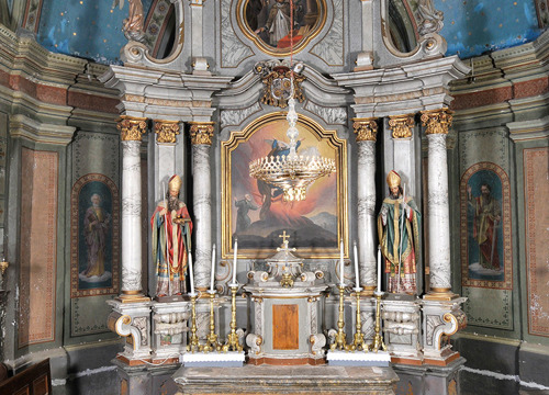 Uza zidove broda izvorno su stajala još dva barokna oltara koja su uklonjena tijekom obnove između 1902. i 1915. godine, kad je potpuno preuređen i inventar crkve, odnosno sve su površine zidova i svodova nanovo oslikane. S triju baroknih oltara uklonjeni su originalni kipovi te su postavljeni novi. Nadalje, sva su tri oltara preslikana s više slojeva uljane boje, a izvedena je i nova metalizacija (pozlata) dijelova oltarne arhitekture. U donjim su dijelovima (menze i predele) oltari preslikani trima naknadnim slojevima, dok su u zonama retabla i atike preslikani dvama slojevima uljanih naliča. Na retablu glavnog oltara sv. Ilije proroka postavljena je nova oltarna pala, a u središnjoj niši iza nje kip Krista. Na oltarima su dokumentirana brojna mehanička oštećenja sloja štukomramora (pukotine, odvajanje od podloge, otkrhnuti dijelovi dekoracije i sl.), a na površinama su uočeni i prethodni neadekvatni restauratorski zahvati.