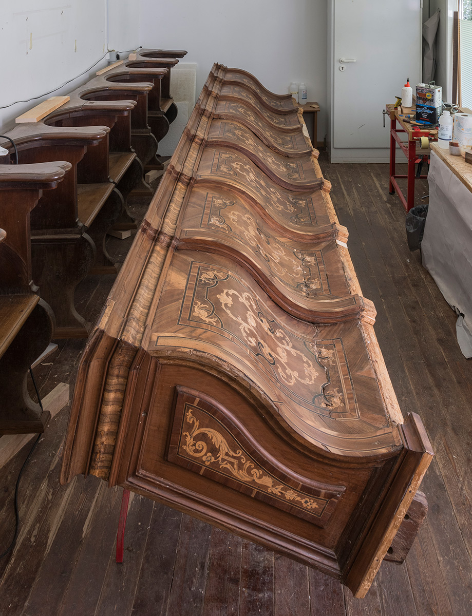 Početak konzervatorsko-restauratorskih radova na korskoj klupi iz crkve Navještenja Blažene Djevice Marije u Klanjcu