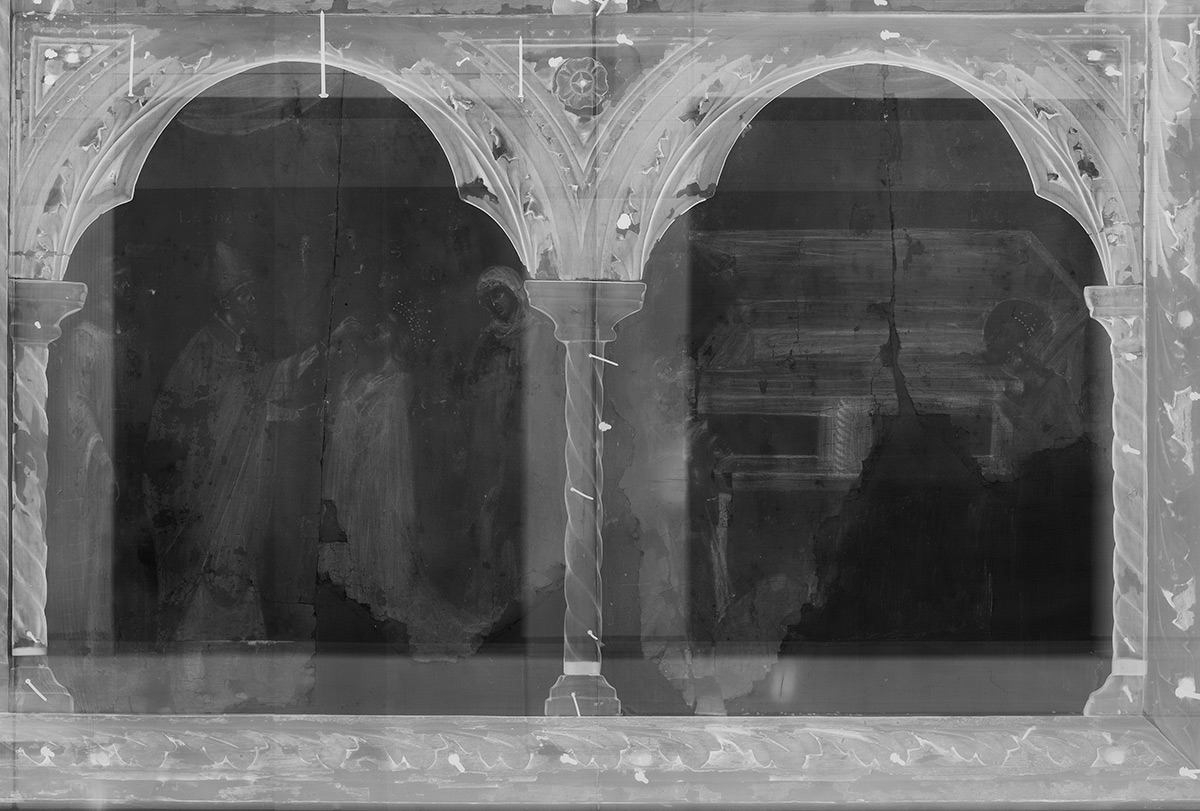 Daljnja restauratorska istraživanja pokazala su da je cijela površina poliptiha prekrivena debljim slojem izuzetno teško uklonjivog voska. S obzirom da je navedeni retuš na slikanom sloju tehnološki dobro izveden te da ne nagrđuje likovnu cjelovitost poliptiha, on nije uklonjen već je na pojedinim mjestima samo korigiran. Ipak, spomenuti sloj voska tehnološki je onemogućavao jednostavnije korekcije alteriranog retuša na područjima oštećenja izvorne pozlate u pozadini prikaza. Iz tog je razloga retuš na pozadini priozora u potpunosti uklonjen i ta su područja ponovo integrirana u cjelinu novim retušem s pomoću zlata u prahu.