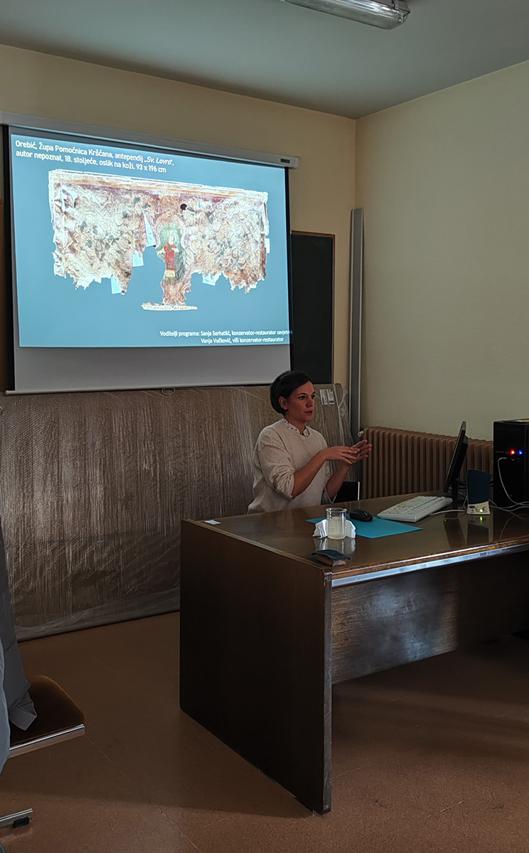 Videom o kolažu "Barson" Victora Vasarelyja iz Muzeja suvremene umjetnosti u Zagrebu, prikazani su konzervatorsko-restauratorski radovi i problematika završnog retuša na umjetnini op-arta u tehnici sitotiska, dok je predavanje o stropnim medaljonima velikih dimenzija iz kurije Helenbach Mikšić iz Zeline objasnilo prednosti i mogućnosti montiranja velikih umjetnina na papirnatom nosiocu s pomoću neodimijskih magneta.