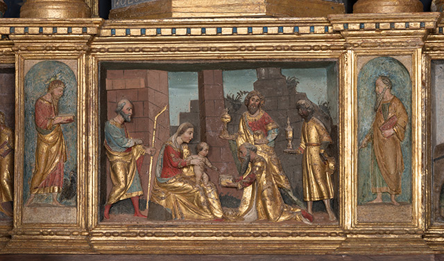 Potpisani i datirani impozantni dvokatni glavni oltar mutvoranske župne crkve djelo je Paola Campse de Bobotija, jednoga od najvažnijih venecijanskih renesansnih drvorezbara. Izuzetno bogata i uspješna produkcija njegove radionice može se pratiti od 1497. do 1534. godine. Sudeći prema potpisanim i pripisanim djelima te opsežnim arhivskim podacima, Campsa je imao velik broj suradnika, a procjenjuje se da je u tom dugom razdoblju u radionici moglo biti izrađeno čak 185 oltarnih cjelina. Skupocjeni oltari isporučivani su naručiteljima diljem Mletačke Republike, a u velikom se broju kao naručitelji javljaju i pojedinci i vjerske zajednice duž istočnojadranske obale.