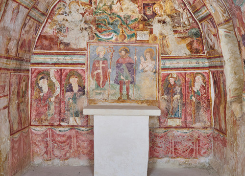 U završnoj fazi izvedena je reintegracija slikanoga sloja s pomoću pigmenata vezanih Tyloseom MH300 i Klucelom G. Veće žbukane nadoknade povijesnoga restauratorskog zahvata na svetišnom zidu su sačuvane i dodatnom obradom tonski prilagođene okolnom osliku. Nove žbukane nadoknade tonirane su neutralnim tonom svjetlijim od izvornoga. Oštećenja na izvornom sloju minimalno su retuširana tehnikom tonskog prilagođavanja lazurnim nanošenjem lokalnog tona, a retuš je mjestimice izveden i tehnikom tratteggio. Na taj način postignuta je ujednačenost, a time i bolja čitljivost prikaza. Tragove biološkog onečišćenja nije bilo moguće ukloniti pa je njihova vidljivost umanjena retušem. Faza završne prezentacije usmjerena je na umanjivanje vidljivosti oštećenja uz uvažavanje povijesne, umjetničke i starosne vrijednosti zidnih slika.