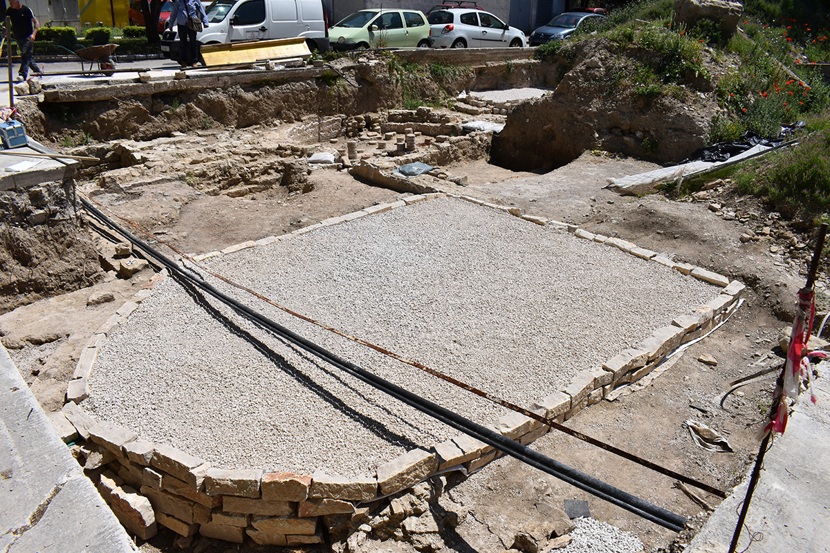 S ciljem zaštite mozaika, nalazište je privremeno tamponski zaštićeno. Privremeni zaštitni sloj osigurat će povoljnije uvjete očuvanja do dovršetka arheoloških istraživanja te usvajanja strategije održavanja i zaštite s cjelovitim prezentacijskim rješenjem nalazišta. (IJ)
