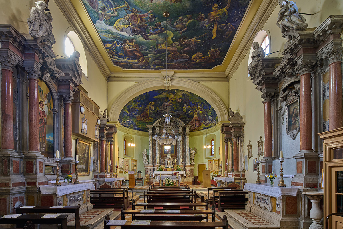 Franjevački samostan smješten je južno od crkve. Povezan je s njom lučnim prolazom koji premošćuje ulicu i kojim se u razini kata pristupa u prostor pjevališta. Samostanski kompleks zapravo je nastao obuhvaćanjem niza povezanih manjih zgrada, među kojima se reprezentativnošću detalja ističe spomenuta gotička palača Foscolo.