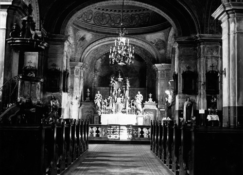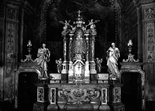 Kanonik dr. Kamilo Dočkal (1879. – 1963.), utemeljitelj i prvi ravnatelj Dijecezanskog muzeja, sve je skulpture preuzeo i pojedinačno evidentirao, istraživši i njihovu povijest pregledom kanonskih vizitacija u kojima se opisuje inventar župne crkve sv. Ivana Krstitelja. Uspoređujući izvještaje iz 1706. i 1729. godine, Kamilo Dočkal zaključuje da je skulptura Bogorodice s Djetetom vjerojatno 1706. godine bila smještena na drugom katu glavnoga oltara župne crkve, a dvadesetak godina poslije premještena je na donji dio bočnoga oltara Majke Božje, na mjesto prijašnje slike. Donekle je ostalo nerazjašnjeno kada je točno i zbog čega skulptura iz čuvaonice Dijecezanskog muzeja dospjela na mramorni glavni oltar, na poziciju na kojoj je prethodno bilo metalno raspelo. Raspelo je vidljivo na fotografiji Đure Griesbacha iz 1930. godine, kao i na fotografiji iz ostavštine Anđele Horvat iz 1974. godine. Na fotografiji objavljenoj u monografiji Župe iz 1985. godine, u središtu oltara 'pojavila' se drvena polikromirana skulptura Bogorodice s Djetetom. Možemo pretpostaviti da je skulptura između 1974. i 1985. godine preuzeta iz čuvaonice Dijecezanskog muzeja i postavljena na mramorni glavni oltar crkve na Dolcu. Moguće je da se to dogodilo u sklopu nekih opsežnijih radova u crkvi potkraj sedamdesetih i početkom osamdesetih godina 20. stoljeća.