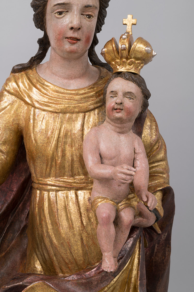 Provedena su konzervatorsko-restauratorska istraživanja nosioca, veziva, bojenog sloja i naknadnih intervencija (voditeljica: Vanesa Gjini, Odjel za drvenu polikromiranu skulpturu 2, Služba za pokretnu baštinu) te je na osnovi rezultata osmišljena metodologija daljnjih radova. Odlomljeni i otpali dijelovi su spojeni, a oslabljeni drveni nosilac je učvršćen. Površinska nečistoća je uklonjena, a odignuti dijelovi podloge i bojenog sloja konsolidirani su i stabilizirani. Nadoknađeni su gubici drvenog nosioca i dijelovi draperije te je prema komparativnom materijalu izrezbareno Bogorodičino nedostajuće žezlo te Djetetovi prsti i kruna. Uklonjeni su neprimjereni naknadni preslici, a oštećenja u sloju podloge i boje su zapunjena. Dovršetkom konzervatorsko-restauratorskih radova uspostavljena je stabilnost svih gradbenih slojeva, što je omogućilo prezentaciju umjetnine u skladu s valorizacijom povijesnih slojeva.