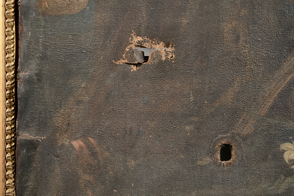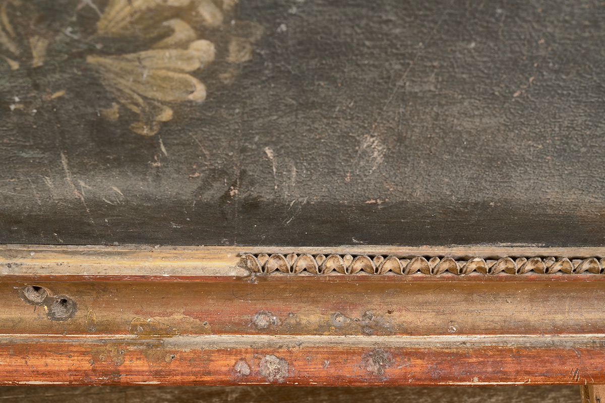Nakon istraživačkih radova na ukrasnom okviru, pristupilo se podljepljivanju izdignutih dijelova krede i pozlate. Dvije velike perforacije u donjem dijelu okvira nadoknađene su u kitu. Prema originalu, izvedena je rekonstrukcija nedostajućeg komada donje ukrasne letvice. Na rekonstruirane dijelove naneseni su kreda i bolus, a retuš pozlate je usklađen s originalom.