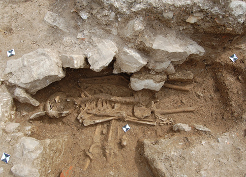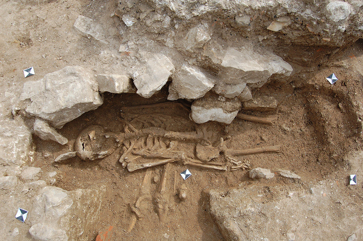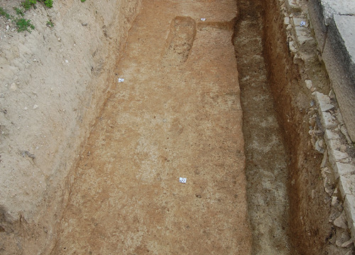 U 2. stoljeću prevladava kosturni način ukopa, koji do 4. stoljeća ostaje jedini način ukopa u istraženom dijelu nekropole. Pokojnici su najčešće polagani ispruženi na leđa u običnu raku, koja je ponekad bila omeđena kamenjem ili pokrivena tegulama. Nešto su rjeđi ukopi u amforama. Zidane grobnice i sarkofazi koji se koriste od 2. stoljeća, u ranijim su razdobljima opljačkani/ispražnjeni pa u njima nije bilo ostataka pokojnika. Kao prilozi, najčešće su pronađene staklene posude i keramičke svjetiljke, a u grobovima se može naći i nakit te dijelovi odjeće. (LČ)