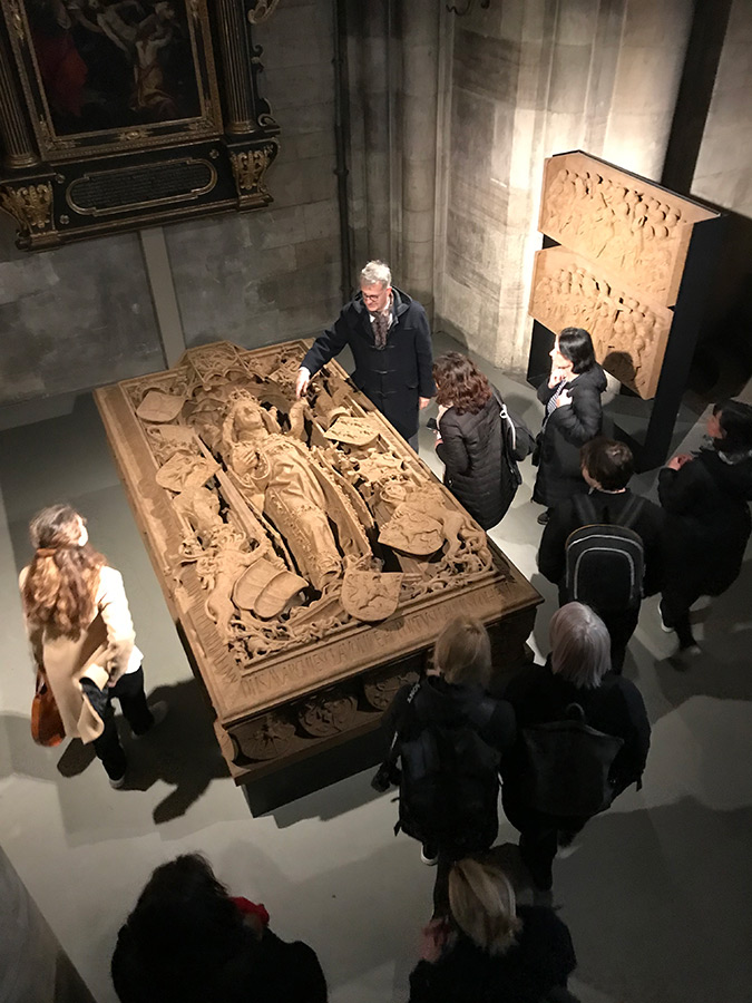 Djelatnici Hrvatskog restauratorskog zavoda bili su 18. travnja u jednodnevnom studijskom posjetu Beču. U sklopu sveobuhvatnih konzervatorskih istraživanja zagrebačke prvostolnice Uznesenja Blažene Djevice Marije i svetih Stjepana i Ladislava te izrade konzervatorskog elaborata razgledana je bečka katedrala sv. Stjepana. Dombaumeister – voditelj katedralne radionice, dipl. inž. arhitekture Wolfgang Zehetner, u suradnji s mag. Johannom Nimmrichterom, voditeljem restauratorskih radionica austrijskoga Zavoda za zaštitu spomenika (Bundesdenkmalamt), u iscrpnom stručnom vodstvu obuhvatio je povijesni pregled izgradnje, dogradnja i obnova katedrale, navodeći oštećenja i glavne izazove pri obnovi te njihova rješenja, kao i prijedloge za prenamjenu i korištenje određenih prostora toga kapitalnog sakralnog objekta i glavne turističke atrakcije u Beču.