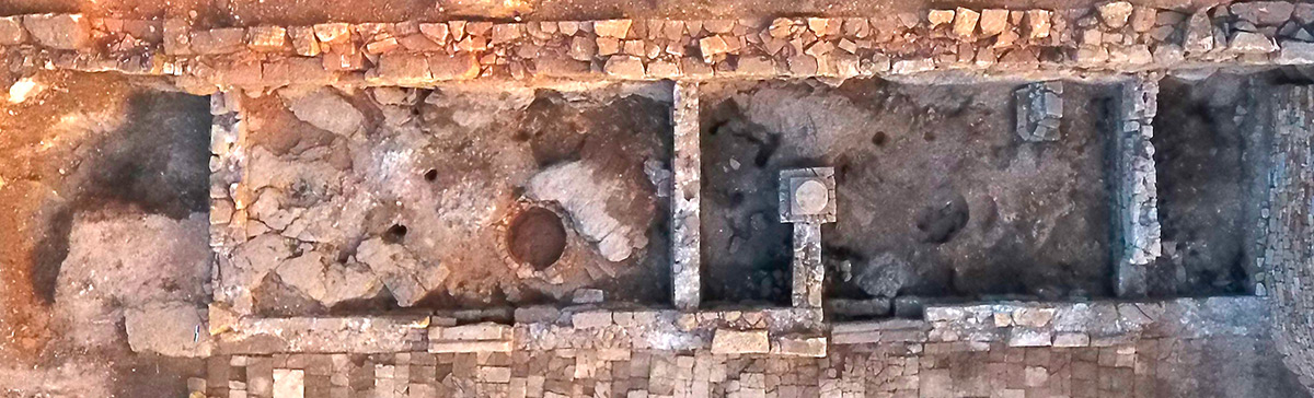 Prostorija radnog naziva "1" ima podnicu izrađenu prilagođavanjem kamena živca i nabijene zemlje. Prema pronađenom pokretnom arheološkom materijalu, vjerojatno se radi o nekoj vrsti trgovine. U prostoriji "2" podnica je također kamen živac i nabijena zemlja. U toj prostoriji pronađena je kružna struktura promjera 113 cm; dno strukture čine pravokutne opeke omeđene imbreksima, dijelom ostacima dolija i druge keramike. Riječ je o strukturi unutar koje se nalazio dolij (velika keramička posuda za spremanje zaliha: vode, ulja, žita). Za prostoriju "2" prema preliminarnim nalazima možemo ustvrditi da je bila taberna.