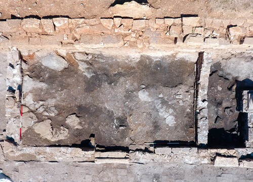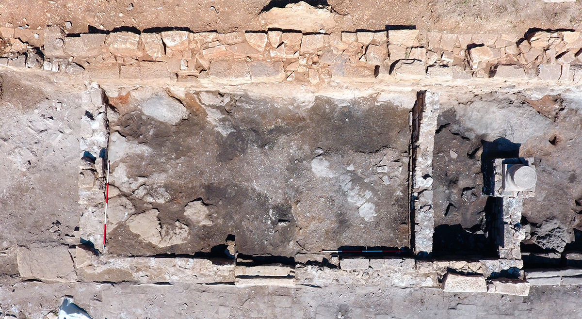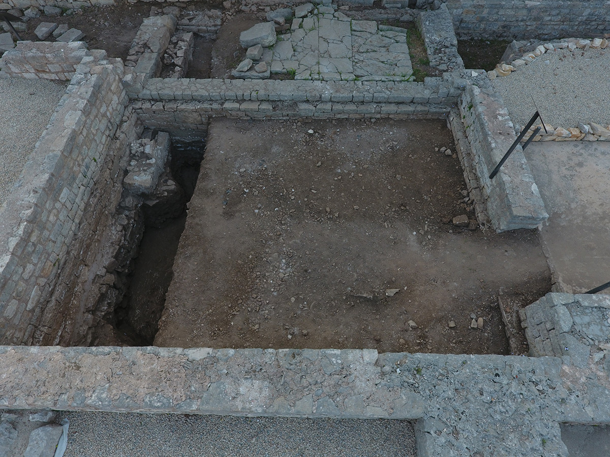 Objekti sa sjeverne strane završavaju masivnim zidom izrađenim prilagođavanjem kamena živca i klesanog kamena. Prema načinu gradnje, vjerojatno je riječ o grčkom zidu na kojemu su mnoge preinake iz rimskoga razdoblja. Zid je od podnica u objektima sačuvan do visine više od dva metra. Istraživanjem zapadno od prostorije "2", gdje se nalazila potencijalna ulica smjera sjever – jug, ustanovljeno je da nje nema, tj. vjerojatno se radi o unutrašnjosti novoga objekta. Namjena navedenog prostora bit će jasnija nakon istraživanja 2024. godine. Provedena su i revizijska istraživanja prostora pretpostavljenog apoditerija. O prethodnim istraživanjima nije ostavljeno ni jedno izvješće, pa ni slikovni materijal s dokumentacijom. Rezultati istraživanja pokazuju da ne postoji 'klupica' koju je spomenuo Branimir Gabričević, temeljem čega je tu prostoriju povezao s apoditerijem. No s obzirom na to da je ta prostorija neposredno uz dva ulaza u termalni kompleks, smatramo da je pretpostavka o apoditeriju i dalje realna. (DB)