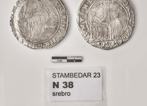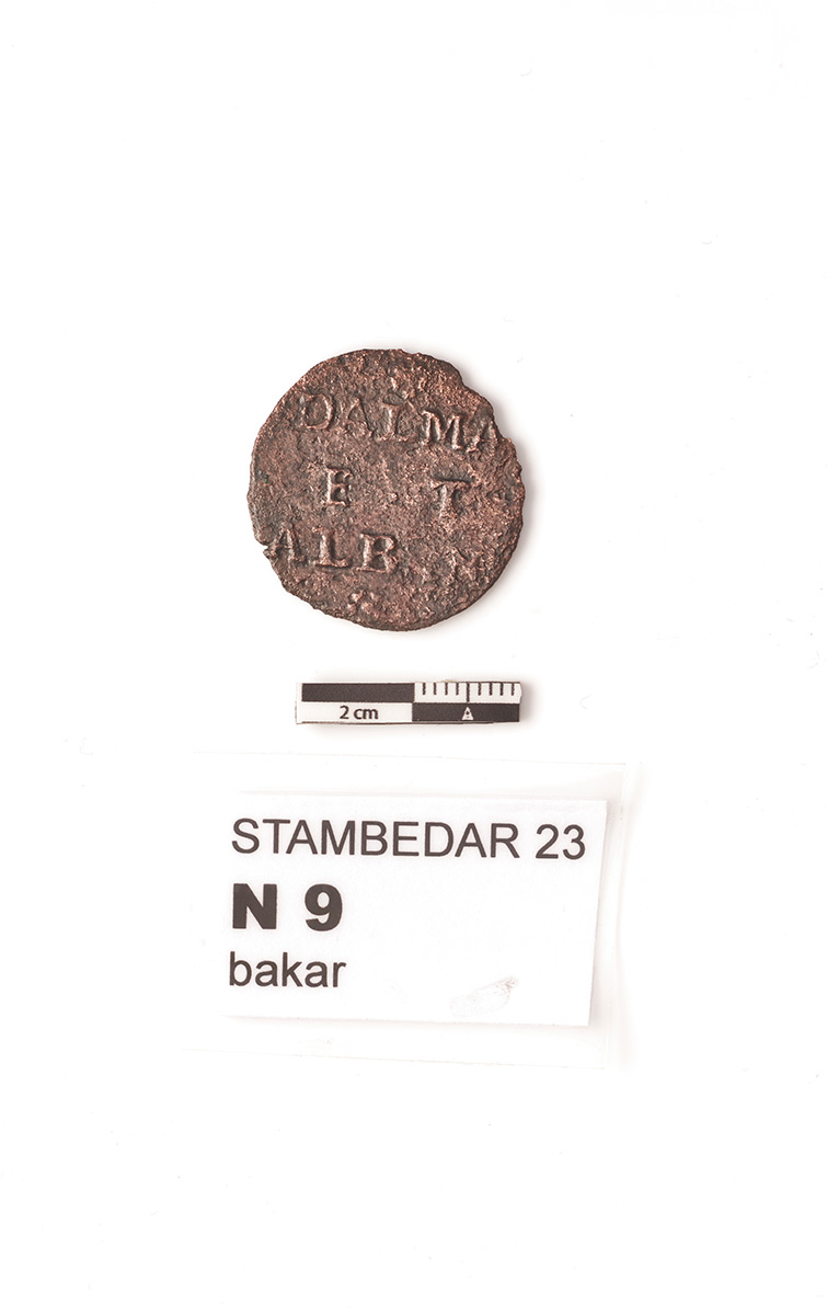 Upravo pronalazak luksuznih predmeta (srebrne i brončane kopče za obuću i odjeću, čaša na stalku, krunica od gagata /crni lignit/ s četiri svetačke medaljice i dva ogledala) možemo povezati s misterioznim putnikom. Uz navedeno, pretpostavlja se i da je prikupljen zlatni, srebrni i bakreni novac vjerojatno imovina te osobe. Od tridesetak srebrnih kovanica, treba izdvojiti dva kovana u vrijeme dužda Domenica Contarinija (1659. – 1675.); jedan s prikazom svete Justine ima vrijednost od 124 soldi, dok drugi (u vrijednosti jednog dukata) prikazuje svetoga Marka kako predaje štap s križem i zastavom duždu koji je u klečećem položaju. Nađen je i karakteristični venecijanski bakreni novac koji je bio u optjecaju u Dalmaciji i Albaniji. Nose natpis DAL(M)(A). / ET / ALB(A)(N) i vrijedni su jedan sold. Od kovanica koje nisu venecijanskog porijekla, najzastupljenije su one kovane u vrijeme cara Svetoga Rimskog Carstva Leopolda I. (1658. – 1705.). Kovanice toga monarha, koji je bio i ugarsko-hrvatski kralj, prepoznatljive su po jednoj karakteristici Habsburgovaca: njihovoj izraženoj donjoj čeljusti (tzv. habsburška brada).