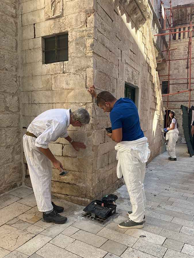 Ostatak dana studenti su radili na konzervaciji-restauraciji kamene plastike na tri lokacije u staroj gradskoj jezgri Šibenika: na portalu crkve sv. Lovre, portalu u Ulici sv. Nikole Tavelića na broju 13 (Kolo) te na kamenom stubištu crkve sv. Frane (mentor: Mate Pavin iz Hrvatskog restauratorskog zavoda). Na taj su način studenti iz Splita, Zagreba, Beča i s Cetinja stjecali praktično znanje i vježbali manualne vještine pod mentorstvom iskusnih restauratora.