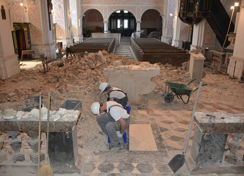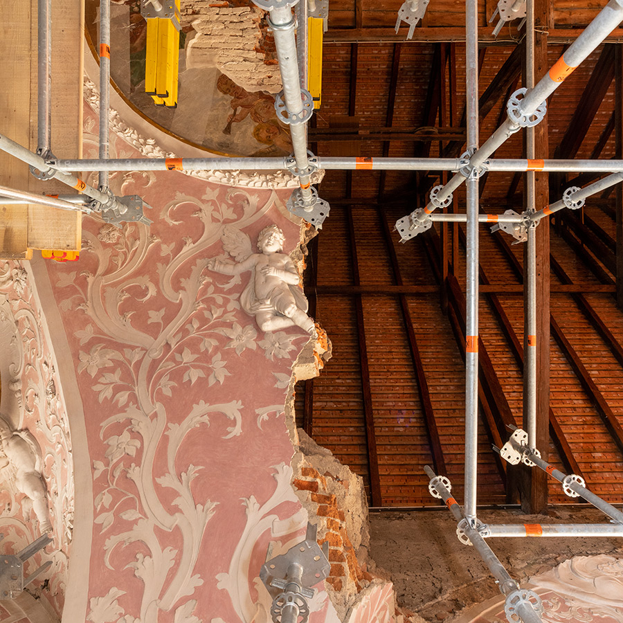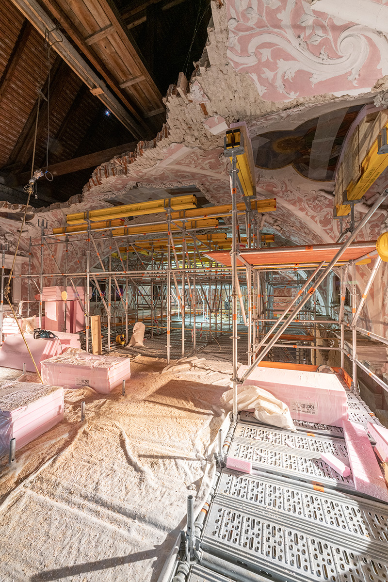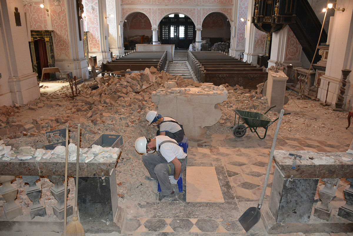 Nakon hitnih mjera zaštite i provedbe potrebnih ispitivanja nosive konstrukcije, u drugoj je fazi izrađen projekt konstruktivne obnove. Tijekom 2023. godine počeli su konzervatorsko-restauratorski radovi na očuvanim dijelovima svoda crkve, poglavito na brojnim štukoukrasima i zidnim slikama, podrazumijevajući iznimno složen pristup i metodologiju s obzirom na zahtjevnost uvjeta rada i istovremeno prilagođavanje izvođenju građevinskih zahvata. (EŠ / MJ / BM)