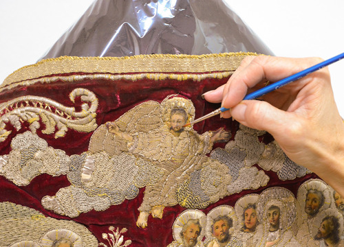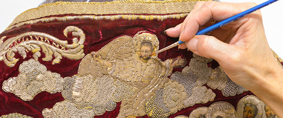 Na felonu s prikazom Uzašašća Kristova 2022. godine izvedeni su cjeloviti konzervatorsko-restauratorski radovi (voditeljica: Sandra Lucić Vujičić, Odjel za tekstil, papir i kožu, Služba za pokretnu baštinu). Dokumentirano je i analizirano zatečeno stanje izradom fotografske i grafičke dokumentacije, predmet je povijesnoumjetnički obrađen te su provedene laboratorijske i tehničke analize. U Prirodoslovnom laboratoriju Zavoda dokazano je košenilno bojilo niti osnove vlaska baršuna s oplećja. Posebno je analizirano bojilo crne broché potke temeljne tkanine prije izvođenja mokrog čišćenja: papirnatim trakicama (Iron Gall Ink Test Paper) u potki su detektirani štetni ioni željeza II, a jednostavnim probama je utvrđeno da je bojilo postojano u negrijanoj destiliranoj vodi. Analize izvedene na Tekstilno-tehnološkom fakultetu i Zavodu za tekstilnu kemiju i ekologiju potvrdile su postojanje močila željezova (II) sulfata – FeSO4 · 7H2O (zelena galica), a za crnu broché potku navodi se da je vjerojatno obojena prirodnim bojilima od biljaka bogatih taninom. S predmeta su odvojene lanena podstava i široka posrebrena traka te završno oplećje od temeljne tkanine. Najizraženije krupne nečistoće zatečene na donjem rubu felona uklonjene su pincetama.